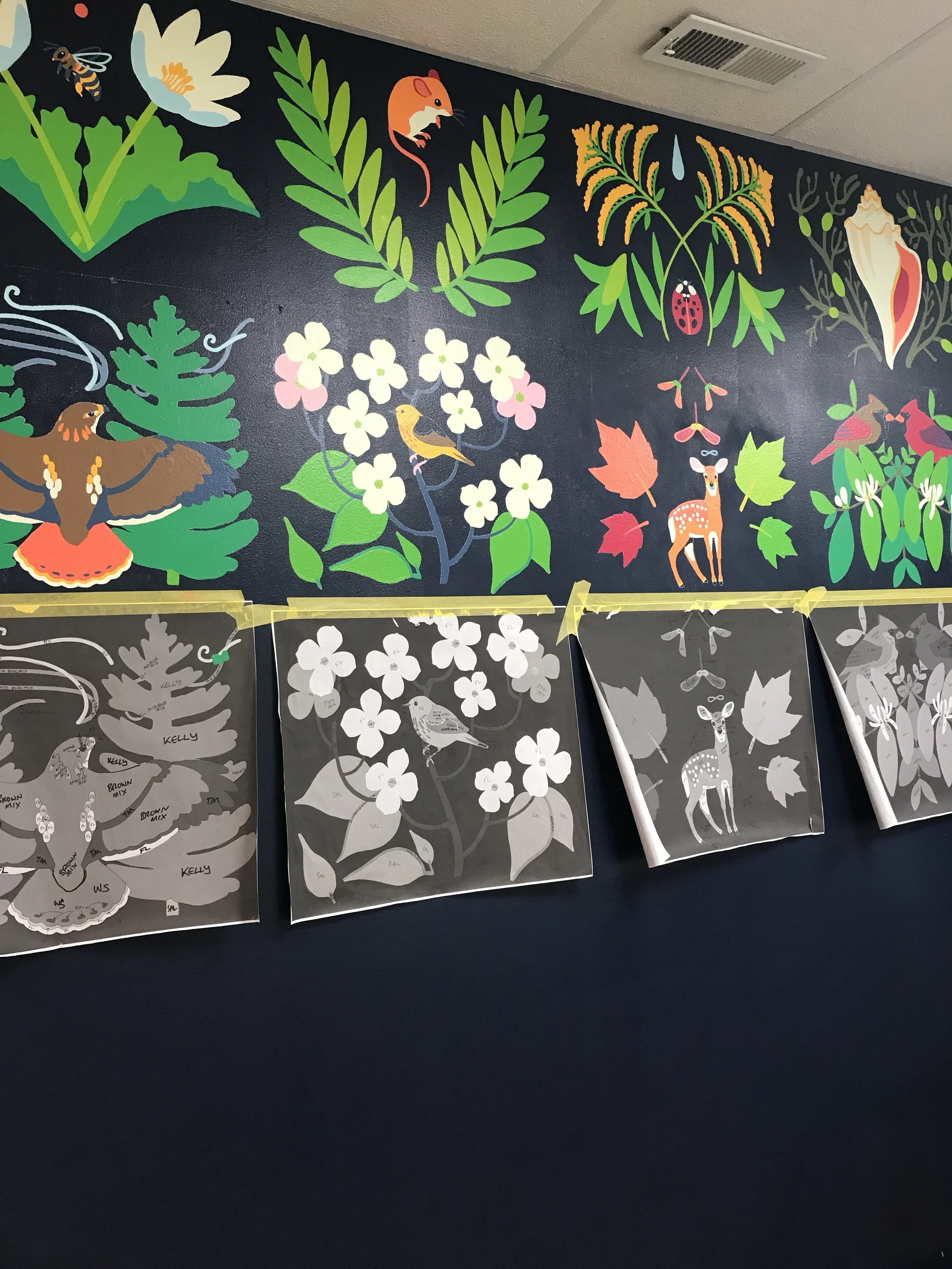 After seven weeks of planning, research, designing, and painting, this project has been completed. You can come see the mural any time during open hours at the Connecticut Audubon Center at Fairfield, Mon - Sat, 10am - 3pm. Thank you for following my project!